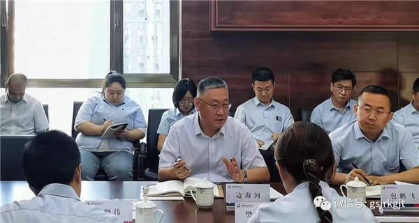 在甘肃再担保,边海河听取了甘肃再担保党委关于落实集团党委“四抓四强化”部署安排、党建融入生产经营典型创建、企业文化建设、全面从严治党和党风廉政建设责任制情况的汇报。边海河对甘肃再担保党建工作开展给予了充分肯定,并对存在的问题提出了指导性意见。他强调,要按照集团党委安排部署,坚持以党建为统领,在党建中找原因、寻差距,并在改革中找办法,不断提高党建工作水平,带动业务工作再上新台阶。