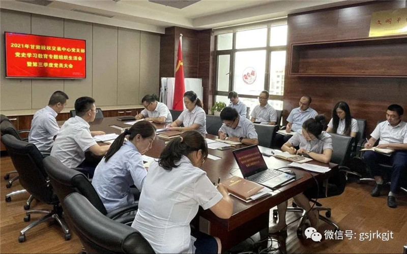 近日,甘肃股权交易中心党支部紧密围绕“学党史、悟思想、办实事、开新局”主题,召开党史学习教育专题组织生活会暨第三季度党员大会,会议由支部书记樊亚娟主持,全体党员及员工参加?;嵘?,樊亚娟首先对党支部半年以来的工作情况进行了总结,通报了党支部委员会检视问题情况,并带头开展个人对照检查。随后,全体党员依次分享了自己在党史学习教育中的收获和感悟,对标党史学习目标,从发挥党员先锋模范作用、立足岗位、履职尽责等方面进行深刻的自我剖析,检视自身存在的问题和差距,深入开展了批评与自我批评。最后,樊亚娟表示,此次专题组织生活会大家谈得到位深刻,既主动剖析自己,又开展相互批评,会议开得严肃、认真、富有成效,达到了红红脸、出出汗、排排毒的效果,帮助全体党员在思想上补了“课”,精神上补了“钙”。下一阶段大家要继续加强理论学习,不断提升思想觉悟,认真整改问题,不断找准努力方向,力求在政治上有明显提高,思想上有明显进步,工作中有明显提效。