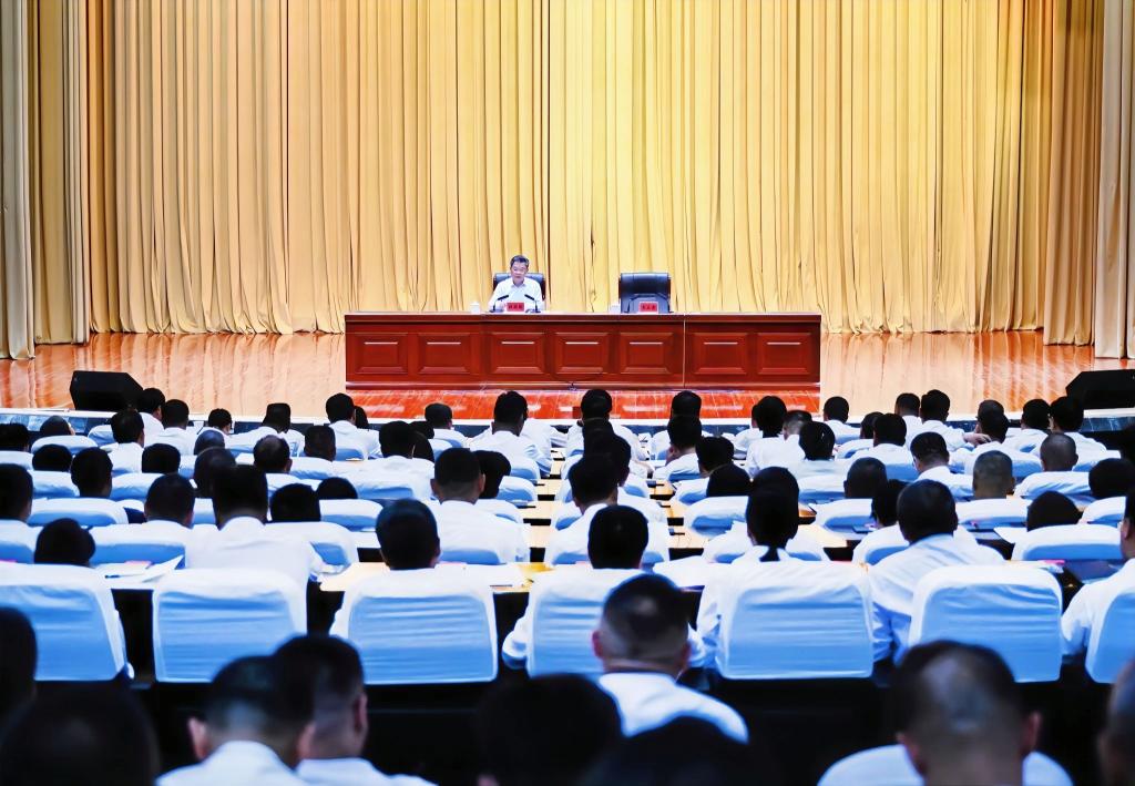 8月5日,省委副书记、省长任振鹤在酒泉市宣讲党的二十届三中全会精神。(记者盛学卿)