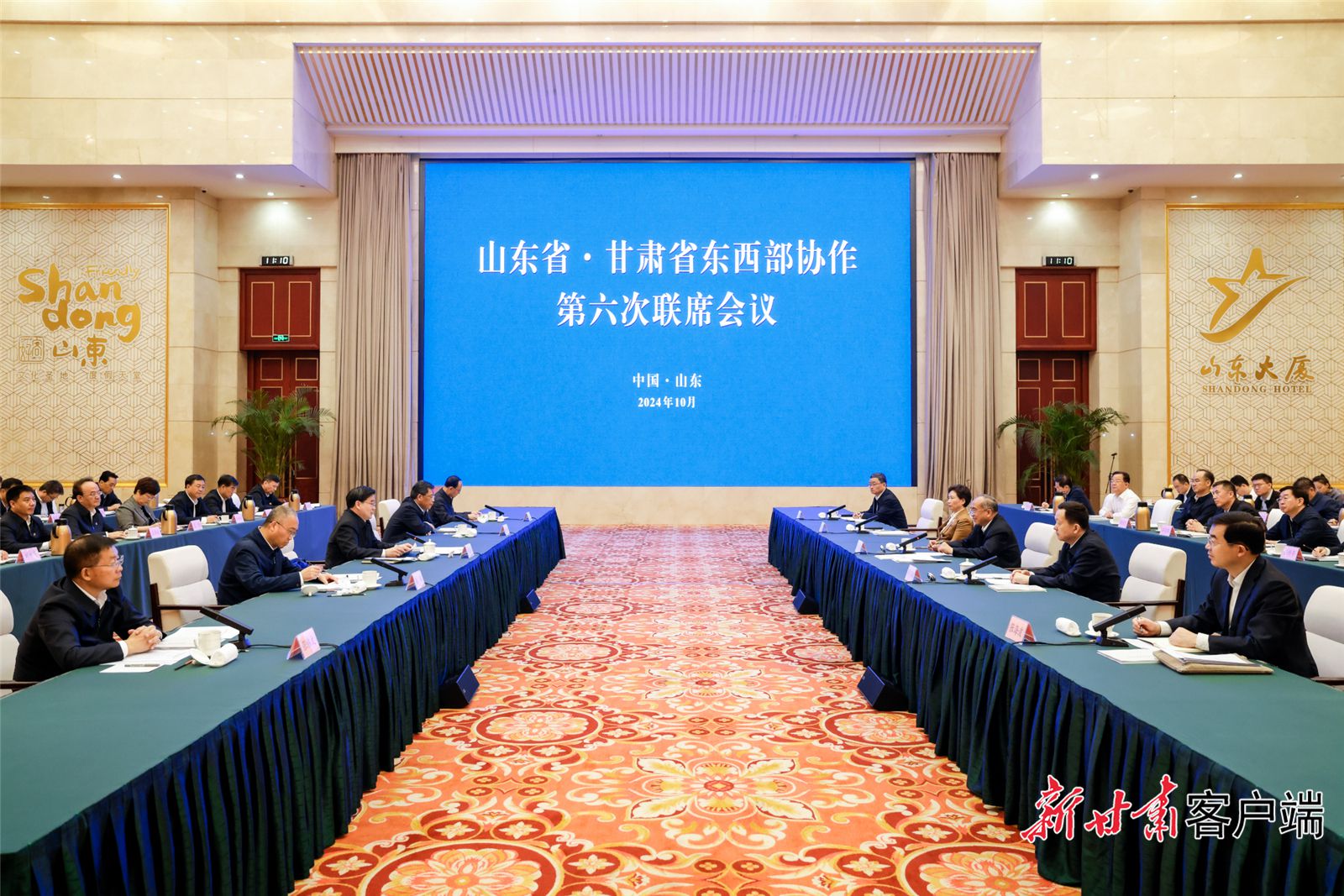 胡昌升代表省委、省政府和全省人民对山东省给予甘肃发展的无私援助和大力支持表示衷心感谢。他说,近年来,山东深入贯彻落实习近平总书记视察山东重要讲话精神,坚决扛牢“走在前、挑大梁”的使命担当,推动高质量发展不断迈出新步伐。山东坚定不移落实党中央、国务院关于东西部协作的决策部署,对甘财政援助持续加大,企业投资和产业合作深入推进,群众就业增收成效明显,干部人才交流日益密切。下一步,我们将深入学习贯彻习近平总书记视察甘肃重要讲话重要指示精神,主动服务和对接区域协调发展战略,同心协力、同题共答,共同绘就甘鲁协作新篇章。持续推进新能源产业合作,加快“陇电入鲁”工程项目建设,促进甘肃新能源及新能源装备制造基地发展;持续推进现代农业合作,深化玉米和马铃薯制种、盐碱地开发利用以及智慧农业、设施农业等领域交流,提升甘肃现代寒旱特色农业发展水平;持续推进产业转移合作,扎实开展“鲁企走进协作地·甘肃行”活动,落地实施一批标志性、引领性项目;持续推进文旅发展合作,加强文旅资源联合开发,不断完善品牌文旅企业和管理公司跨省经营、旅游文创产品开发推广等机制;持续推进生态治理合作,携手加强黄河流域生态保护和高质量发展,为守护黄河安澜、建设美丽中国作出新贡献。