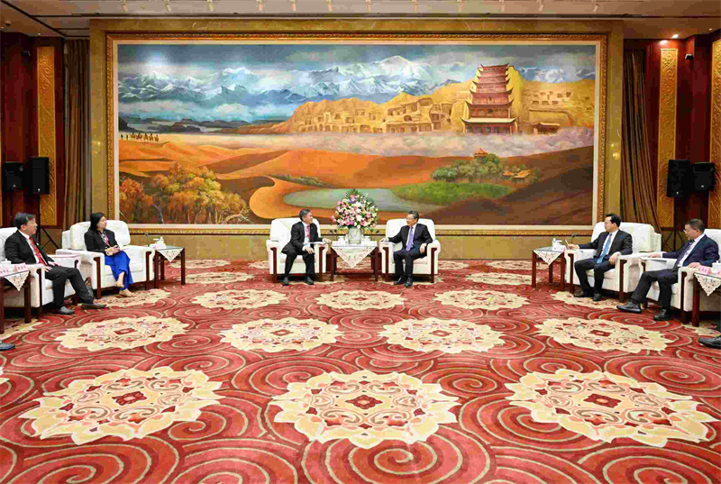 任振鹤对高泉庆一行来甘访问表示欢迎,并简要介绍了甘肃经济社会发展情况。他说,在习近平主席和新方领导人战略引领下,中新关系保持良好发展势头,甘肃与新加坡在科技、教育、文化、医疗卫生等方面的合作交流不断深化,人员往来更加密切。习近平主席指出,甘肃最大的机遇在于“一带一路”。随着高质量共建“一带一路”、西部陆海新通道建设、新时代西部大开发、黄河流域生态?;ず透咧柿糠⒄沟壬钊胧凳┖汀肚蛉婢没锇楣叵敌ā返娜嫔?,甘肃历史文化、资源禀赋、科教人才、工业基础、地理区位的组合优势正在加速释放,也为双方提供了更大市场、更多需求、更深层次的合作空间。新加坡中华总商会是新加坡历史最悠久的重要商团,在国际商业舞台上享有盛誉。希望商会充分发挥桥梁纽带作用,更多宣传甘肃、推介甘肃,推动甘肃与新加坡各领域合作再上新台阶。我们将持续营造市场化、法治化、国际化一流营商环境,为企业提供优质高效的服务,让大家投资在甘肃、满意在甘肃、收获在甘肃。