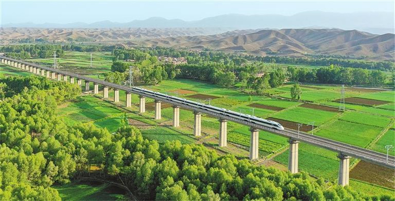 列车在兰张高铁兰武段行驶。兰州至张掖高铁中川机场至武威东段于2024年6月开通运营。资料图