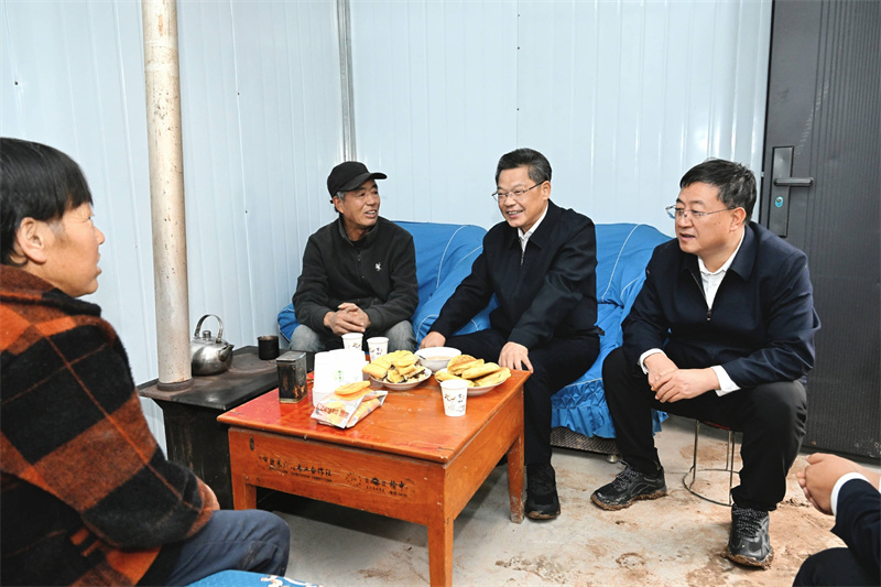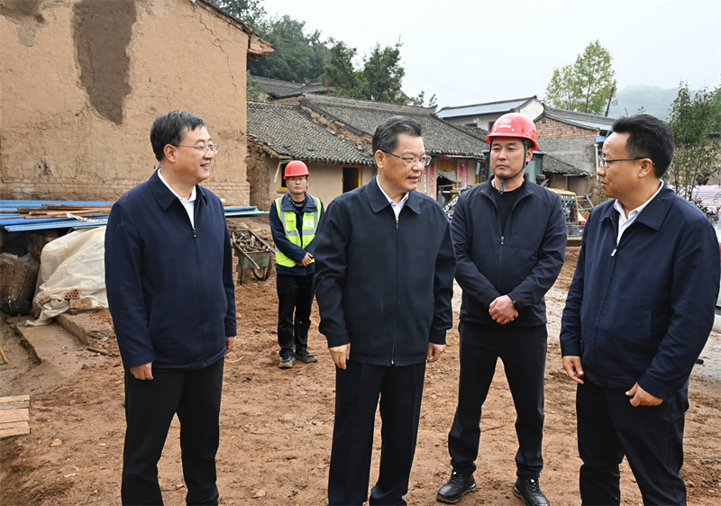 10月4日,省委副书记、省长任振鹤在漳县调研地震受灾和群众基本生活保障情况,并主持召开陇西5.6级地震灾后恢复重建现场办公会。(记者盛学卿)