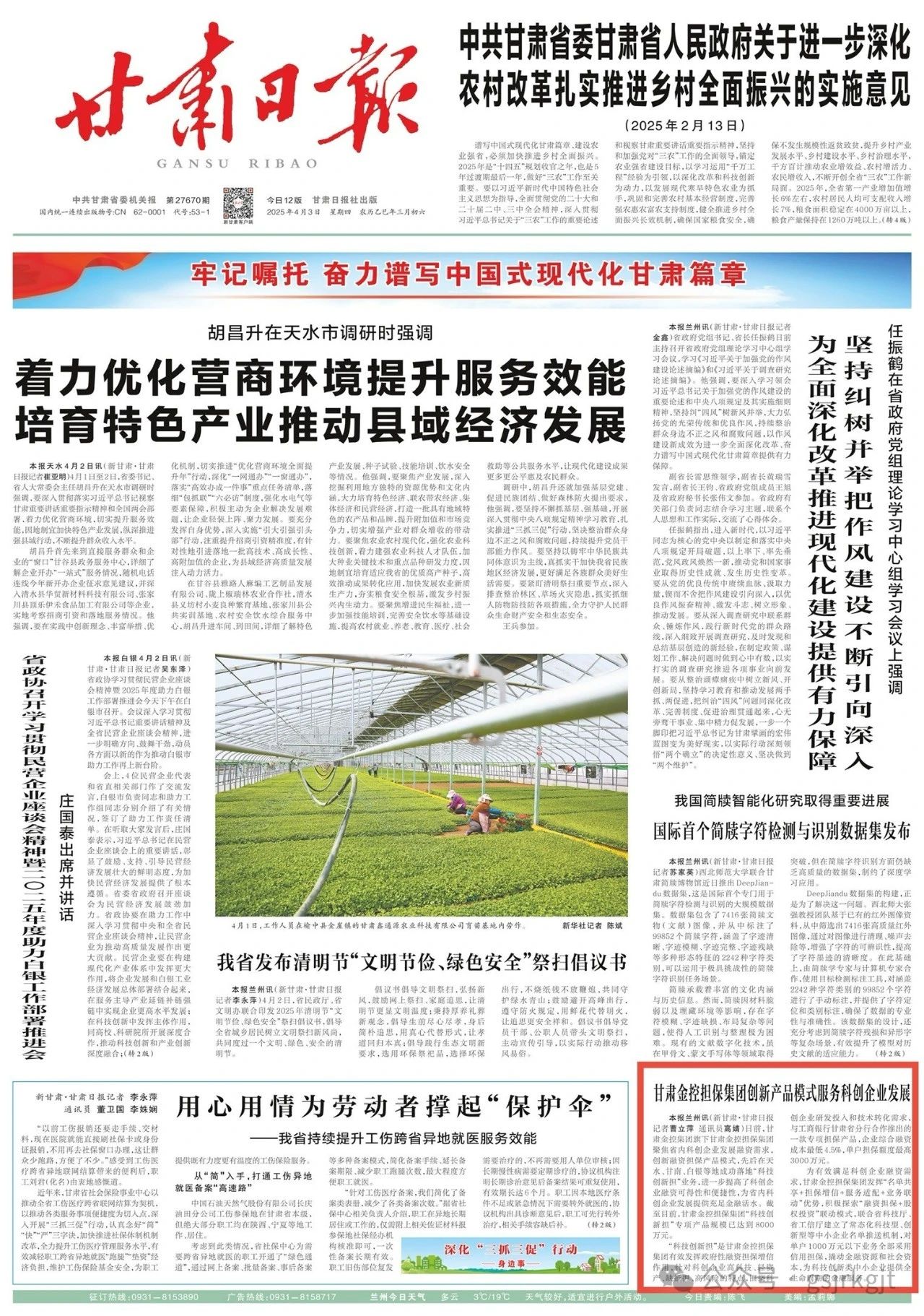 甘肃金控担保集团创新产品模式服务科创企业发展