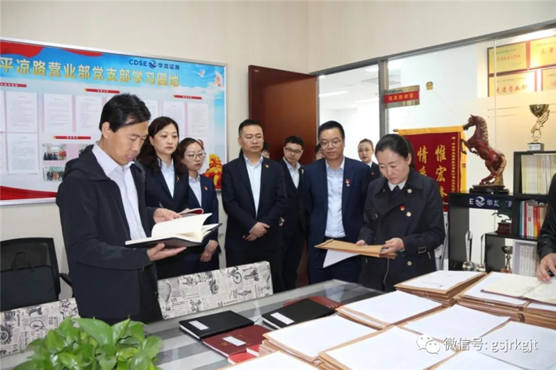 考核组还对金控集团华龙证券2020年度党建工作责任制落实情况进行了民主测评、个别谈话,查阅了党建基础资料,并对金控集团办公室、金控担保集团、华龙证券兰州平凉路营业部等基层党组织党建工作情况进行了现场检查。