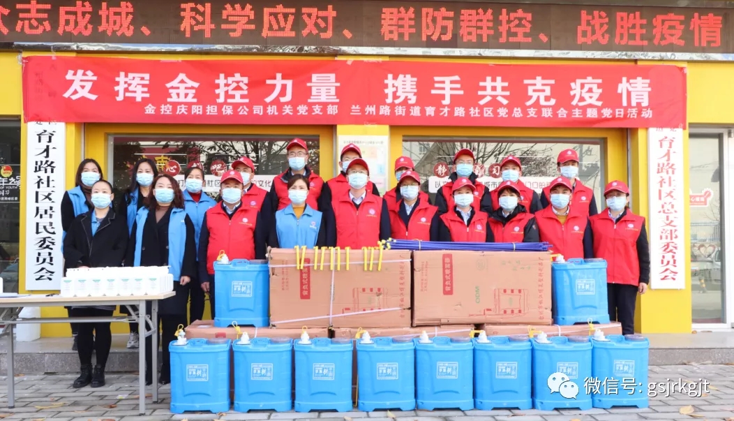 在全省疫情防控处在最吃劲的关键阶段,金控集团组织兰内子公司成立志愿服务队,全力投入疫情防控工作,第一时间向街道社区和帮扶点捐赠医用防护物资和消杀保暖物资共计22.4万元。其中,防护服防护目镜2320套、医用手套3000双、口罩64600个;医用酒精2860瓶、消毒液200瓶、消杀喷壶100个:保暖手套900双、插电式暖手宝300个、暖宝贴3000贴、电暖器5台。