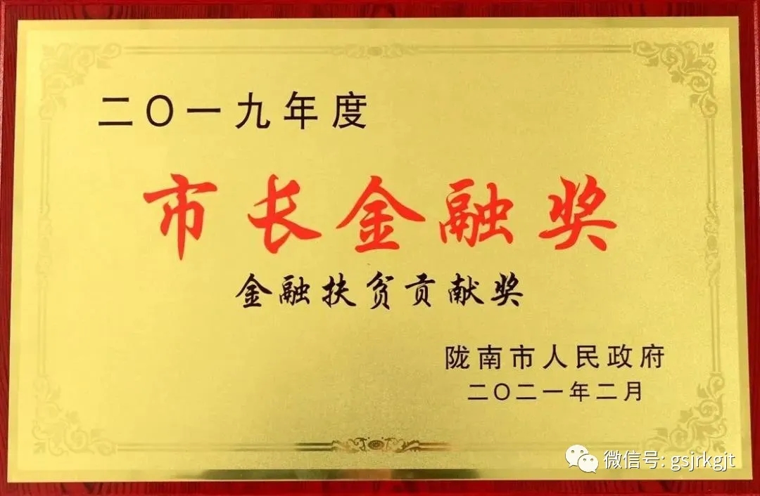 薛小勇授予金控陇南担?!?019年度市长金融奖”