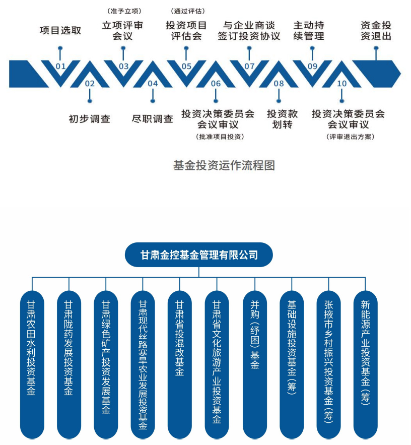 目前,已设立甘肃现代丝路寒旱农业发展投资基金、甘肃农田水利投资基金、甘肃省文化旅游产业投资基金、甘肃陇药发展投资基金、甘肃绿色矿产投资发展基金、甘肃省投混改基金等 6 只基金,各类基金投资运营管理业务开展有序。